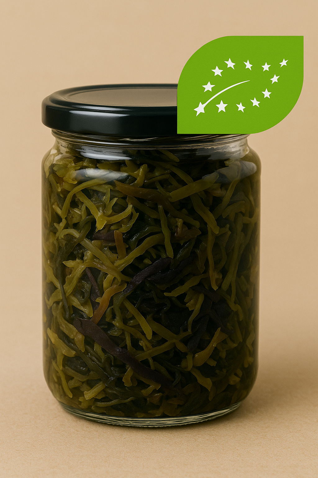 Ensalada de algas ecológica que protege huesos, dientes y la piel, ideal para una dieta saludable.