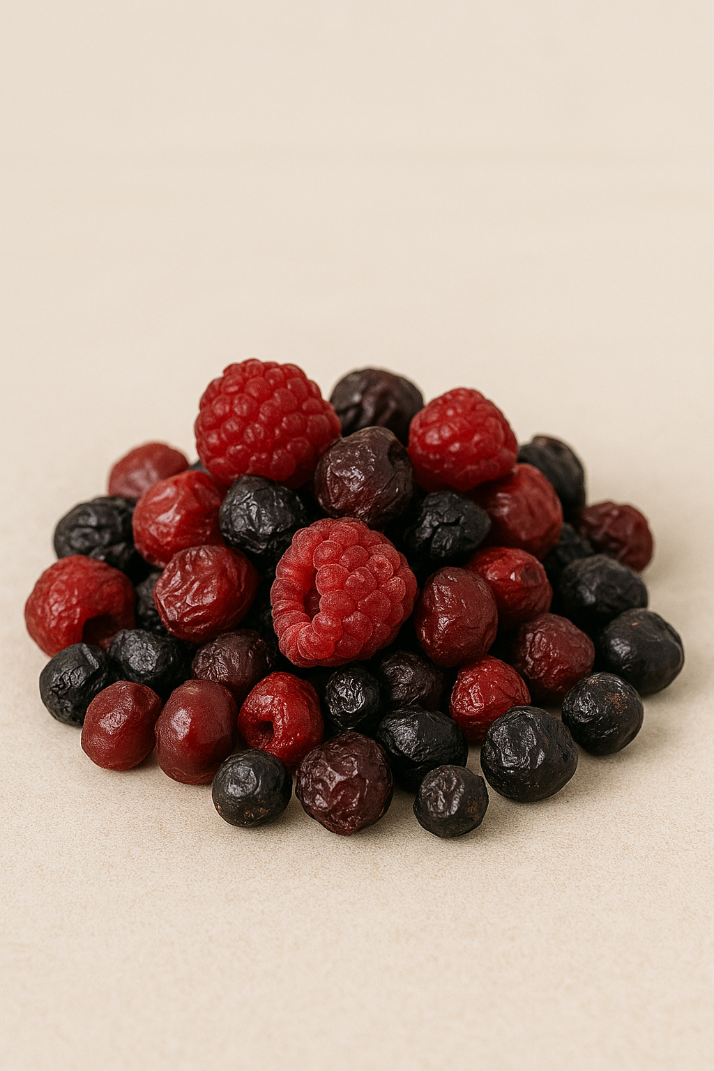 Combinación de frutos rojos con propiedades antioxidantes, ideal para infusiones y preparaciones saludables.