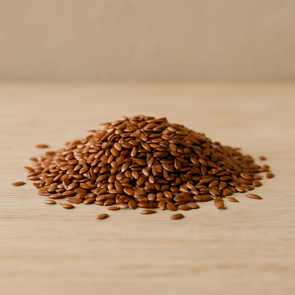 Lino marrón ecológico, rico en omega-3, ideal para dietas especiales y la salud cardiovascular.
