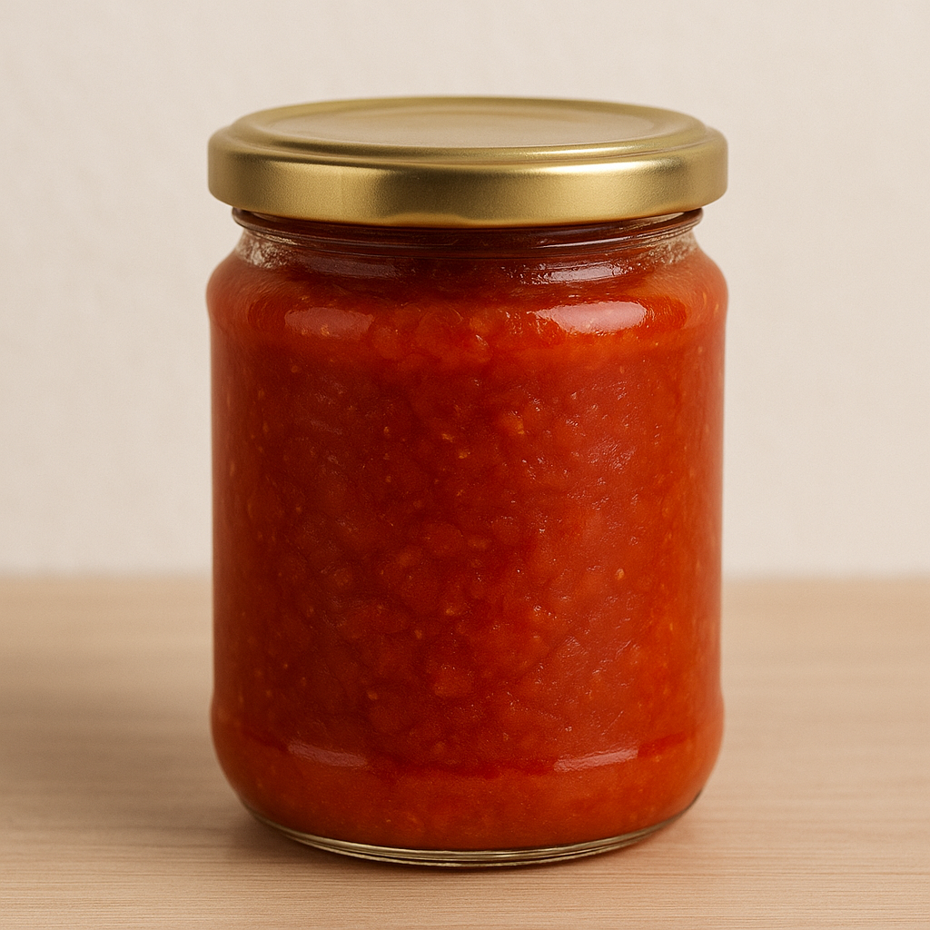 Tomate rallado y asado a leña de manera tradicional, sin conservantes ni colorantes. Ideal para arroces, pastas y sofritos. Sabor a pueblo. Acompáñalo con huevos fritos, embutido o pescado.
